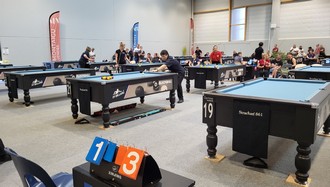 SAISON 2021 / 2022 TOURNOI REGIONAL DE BILLARD BLACKBALL DES PAYS DE LA LOIRE Les 26 et 27 mars 2022, le MBC organisait sont troisième Tournoi Régional de Blackball après ceux de 2018 et 2020 Cette manifestation s'est déroulé à la salle DOLIA, allée des cressonières à St Georges de Montaigu Plus de 120 joueurs se sont affrontés dont l'élite des Pays de Loire Le dimanche, ont eu lieu les finales individuelles et les compétitions par équipe 40 équipes engagées.