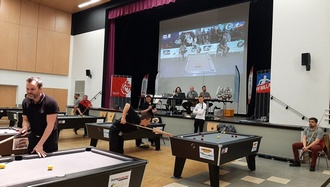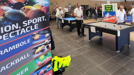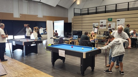 14 SEPTEMBRE 2024 Participation du M-V Billard au Forum des Associations de MONTAIGU-VENDEE A st Hilaire de Loulay, salle Yprésis et ses extérieurs, le M-V B tenait un stand au Forum des associations de MONTAIGU-VENDEE. Les bénévoles du club ont effectué des démonstrations de billard sur les deux tables installées pour cette occasion (carambole et Blackball). Les visiteurs intéressés ont pu pratiquer les deux types de jeu avec nos joueurs confirmés, et, suite à cela une dizaine de personnes se sont inscrites pour poursuivre au club une période d'initiation gratuite. Dans le mois qui a suivi, 8 personnes ont pris une adhésion au club pour la saison.