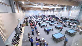 SAISON 2021 / 2022 TOURNOI REGIONAL DE BILLARD BLACKBALL DES PAYS DE LA LOIRE Les 26 et 27 mars 2022, le MBC organisait sont troisième Tournoi Régional de Blackball après ceux de 2018 et 2020 Cette manifestation s'est déroulé à la salle DOLIA, allée des cressonières à St Georges de Montaigu Plus de 120 joueurs se sont affrontés dont l'élite des Pays de Loire Le dimanche, ont eu lieu les finales individuelles et les compétitions par équipe 40 équipes engagées.